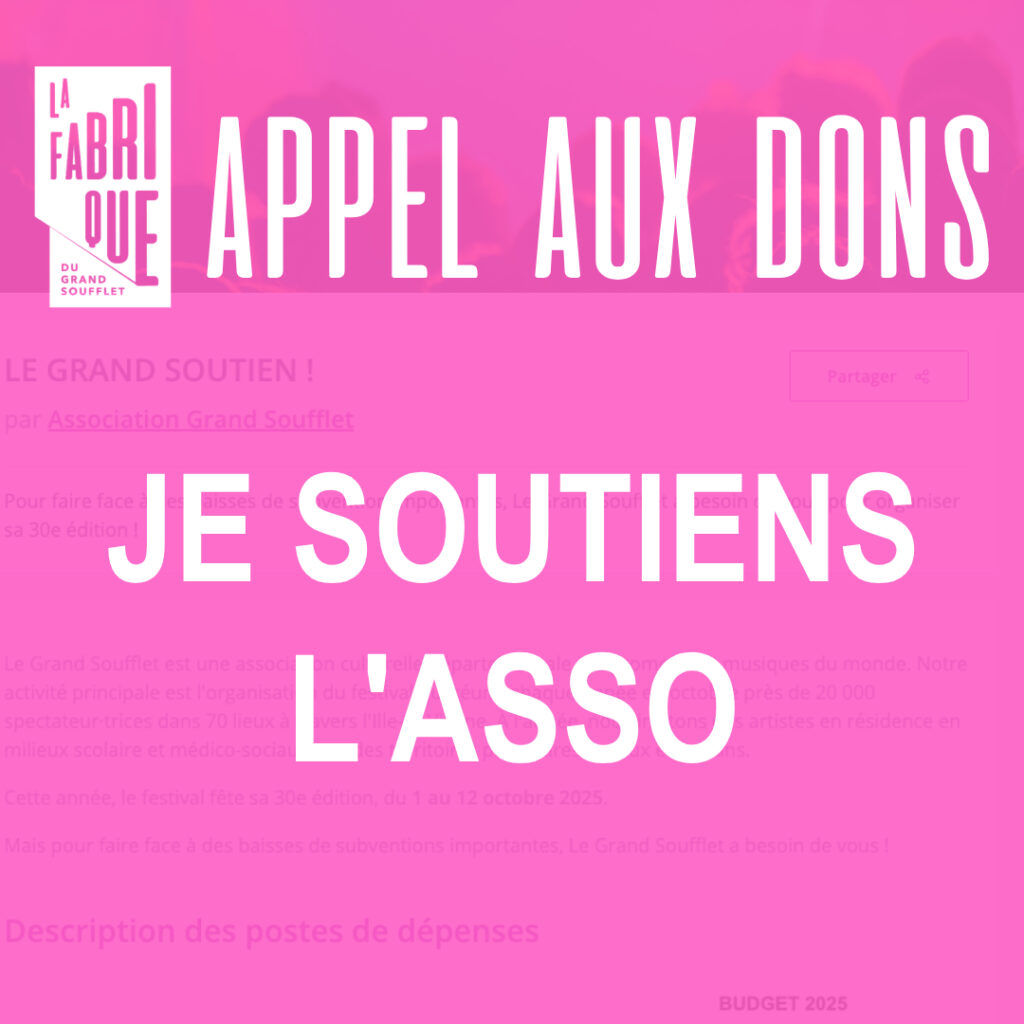 La Fabrique du Grand Soufflet symbolise l’espace de création collectif dans lequel se pensent, se réfléchissent, se construisent – ensemble – les projets de l’association, en favorisant les échanges entre origines sociales, culturelles, géographiques, esthétiques, entre genres et générations.